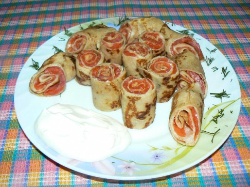 Talia: Эти блюдо понравится любителям не сладких блинчиков. Замечательное блюдо для завтрака (чеснок можно заменить зеленью) или просто очень вкусная закуска.