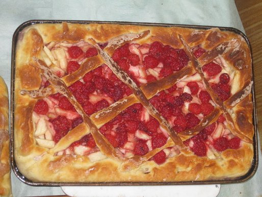 - Пирог накрыть остатками теста. Поставить в разогретую духовку и выпекать 40-50 минут при температуре 180-200 С.