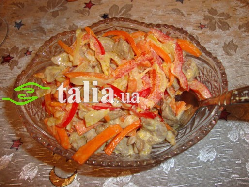 Talia: Такой салатик готовит моя мама. И муж этот салат называет тёщиным салатом. Это один из наших самых любимых салатов. И готовится он из самых простых продуктов.